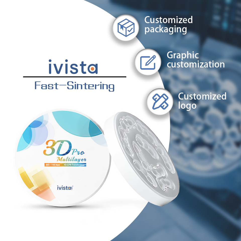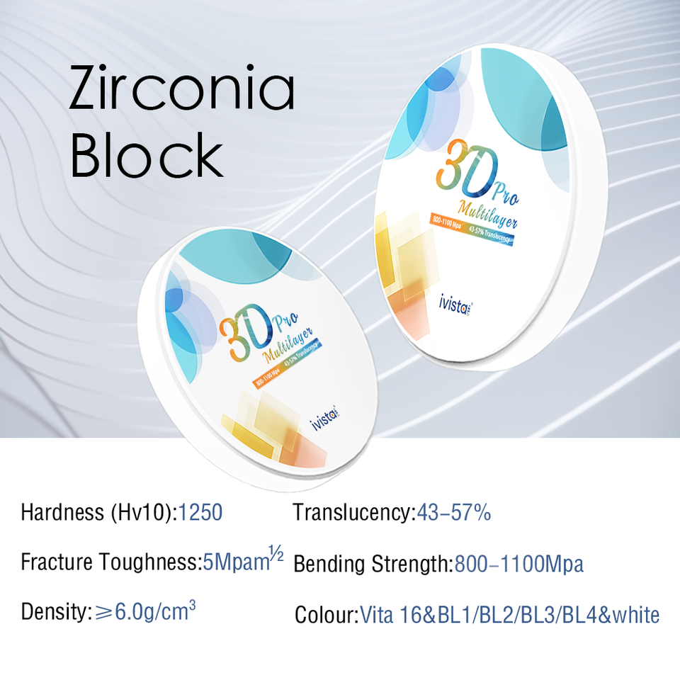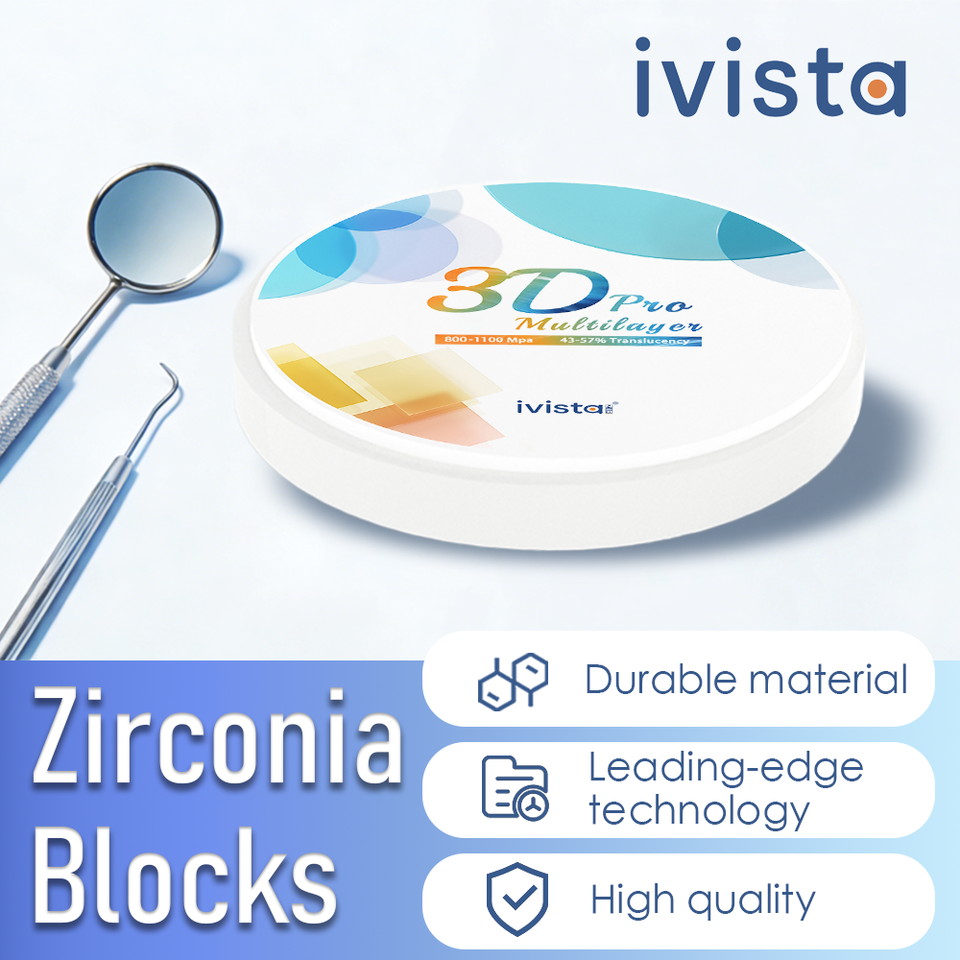 Vente directe IVISTA 3D Pro, bloc en céramique de zircone multicouche haute dureté, résistance à la flexion 800-1100MPa, pour couronne dentaire