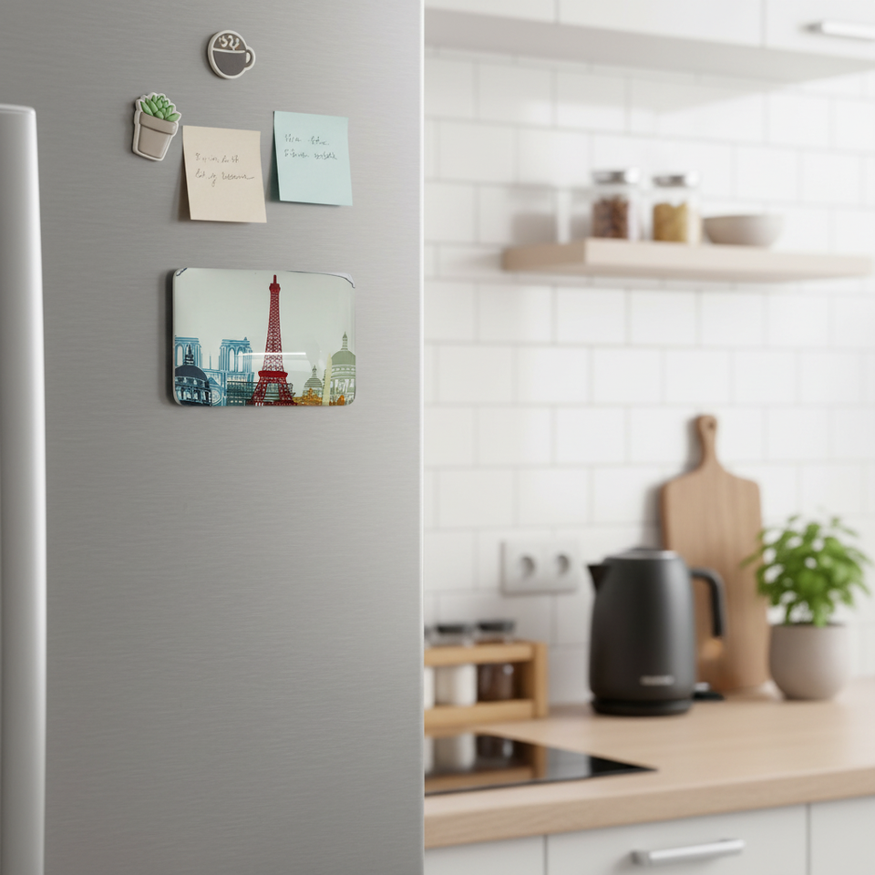Aimants de réfrigérateur en cristal magnétique puissant pour la vente directe, aimants en verre personnalisés pour cadeaux