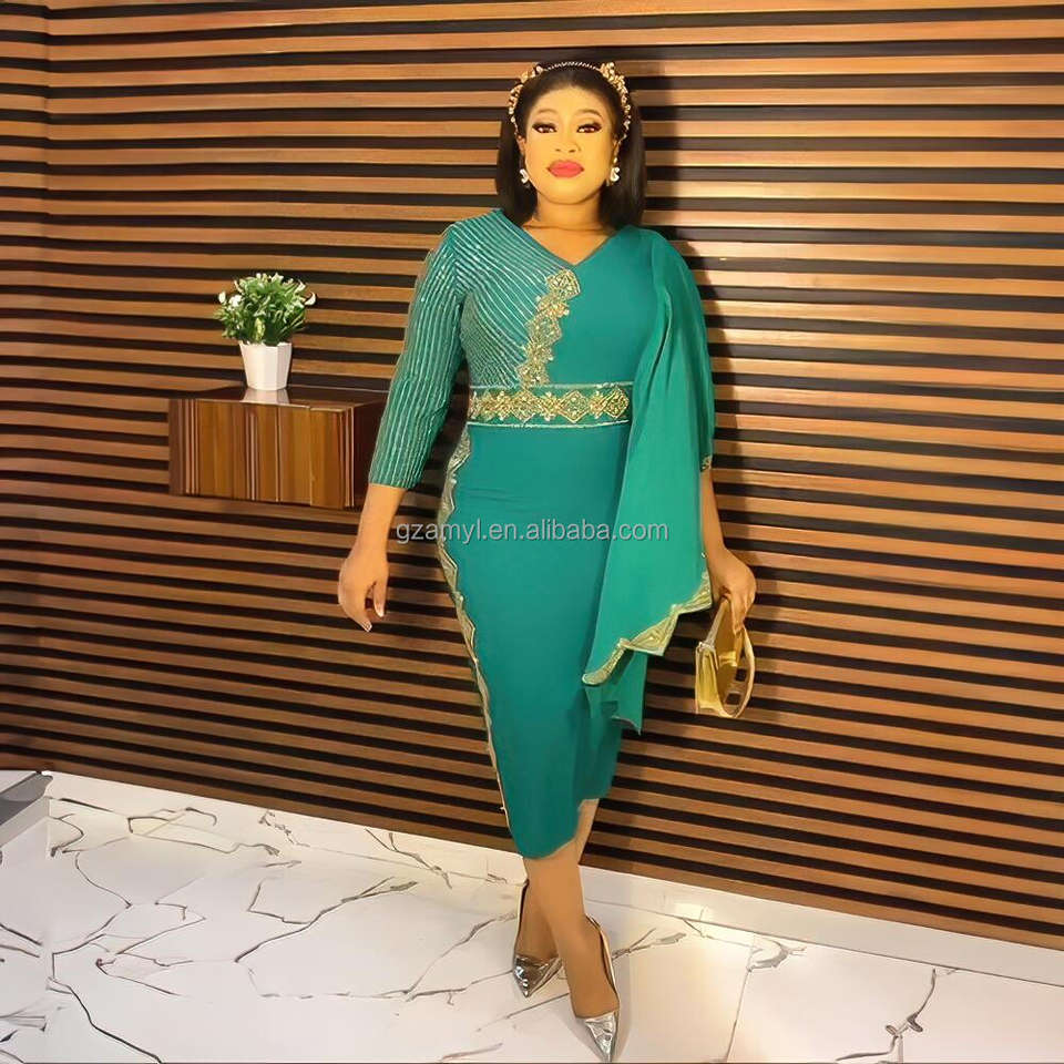 Vente directe de robe blanche pour femmes Rhinestone africain Bazin robe garniture Fit robes africaines élégantes