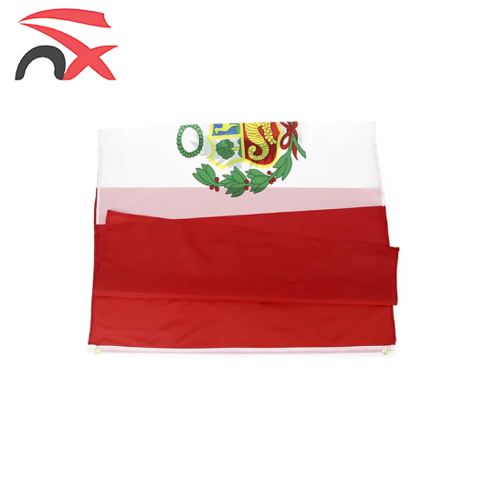 Expédition directe, vente en gros de haute qualité, drapeau du Pérou en polyester 90*150cm, deux boucles doubles pour les activités