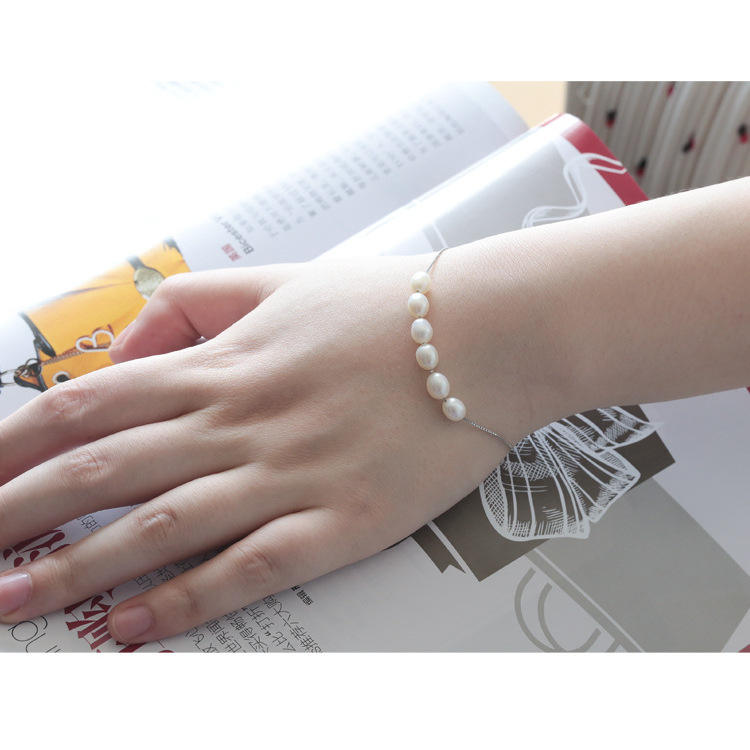 Direct Supply and Wholesale of 925 Silver Chain 6mm Oval Rice Shaped Freshwater Pearls Fine Link Bracelets From Zhuji