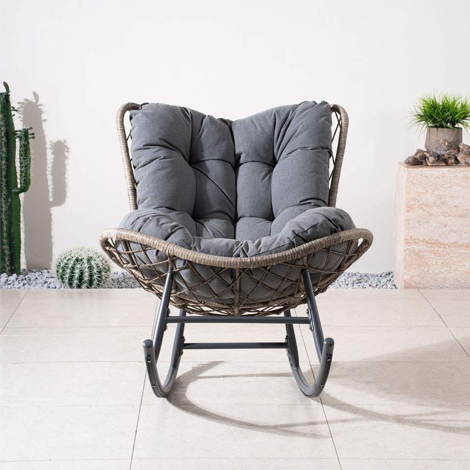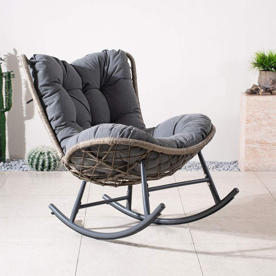 Fauteuil à bascule d'extérieur en métal Direct Wicke avec assise rembourrée épaisse grise, structure robuste, chaise à bascule de patio avec coussin, chaises de jardin