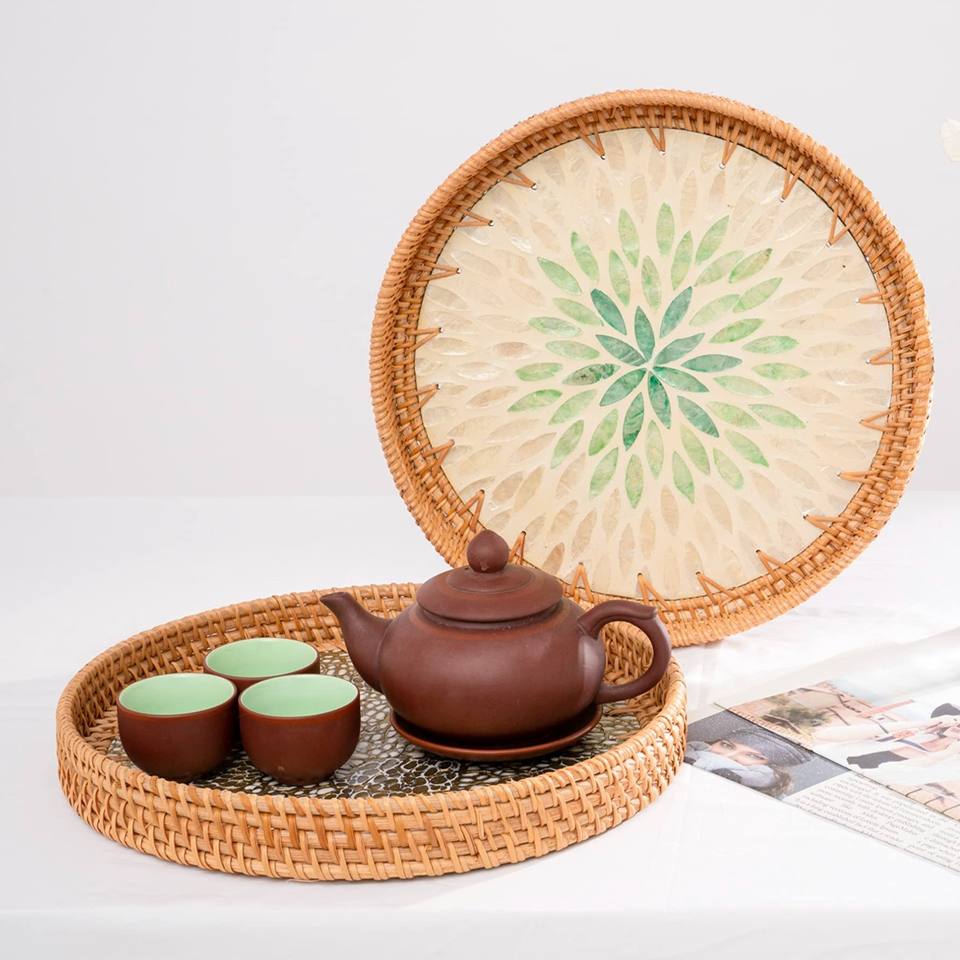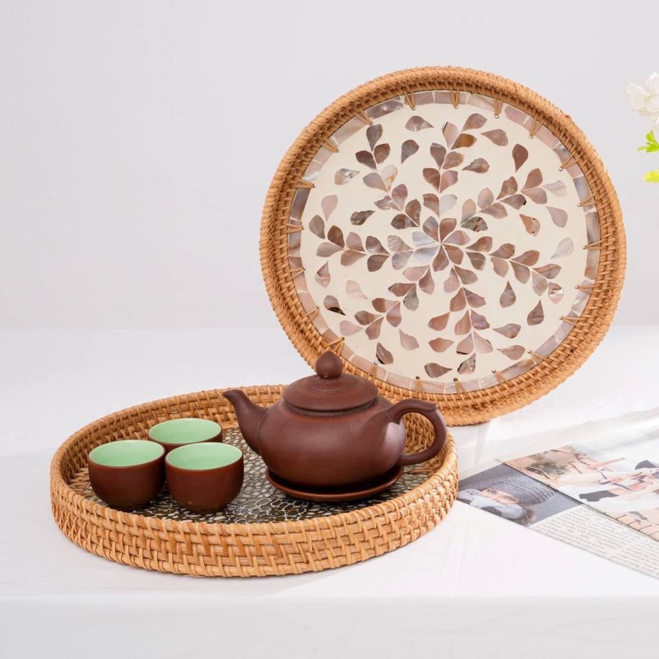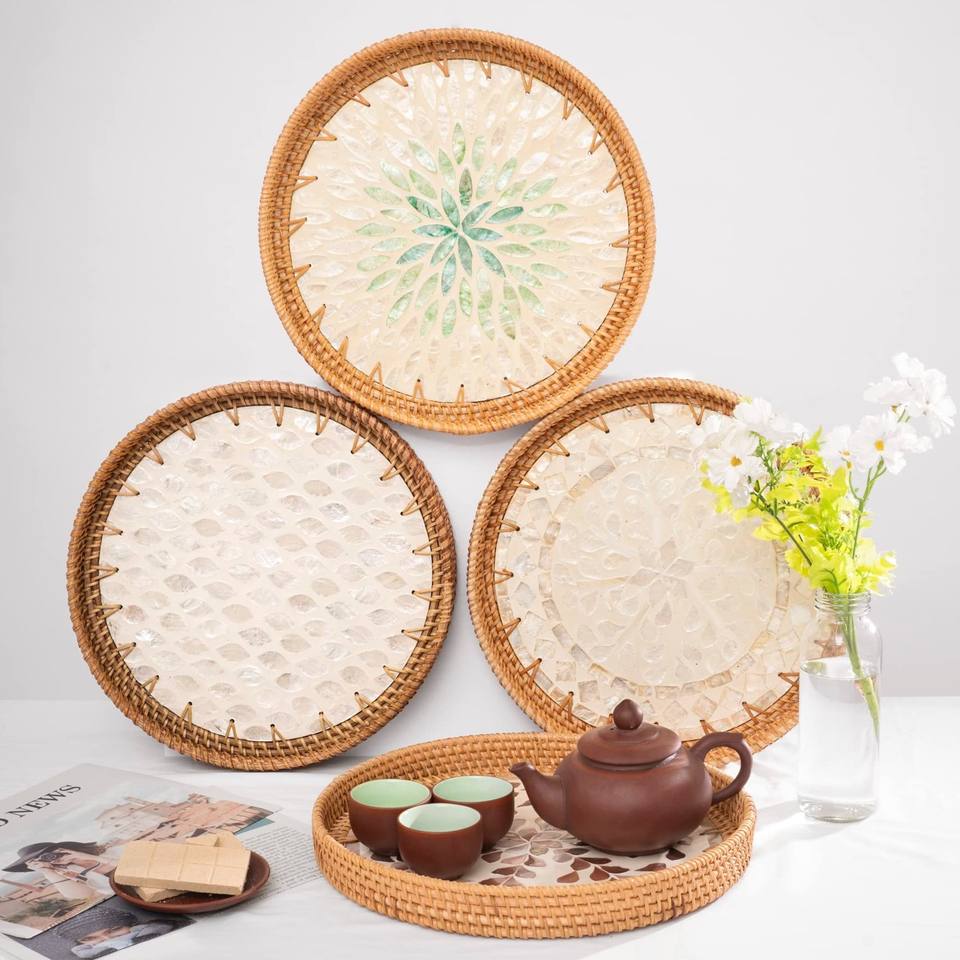 Direct manufacturer rattan MOP tray home kitchen decor mother of pearl trays cheapest wholesale price