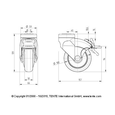 Roue pivotante avec verrouillage directionnel et boîtier en polyamide