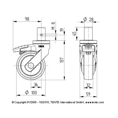 Directional Lock Swivel Caster for Furniture Featuring Polyurethane Tread