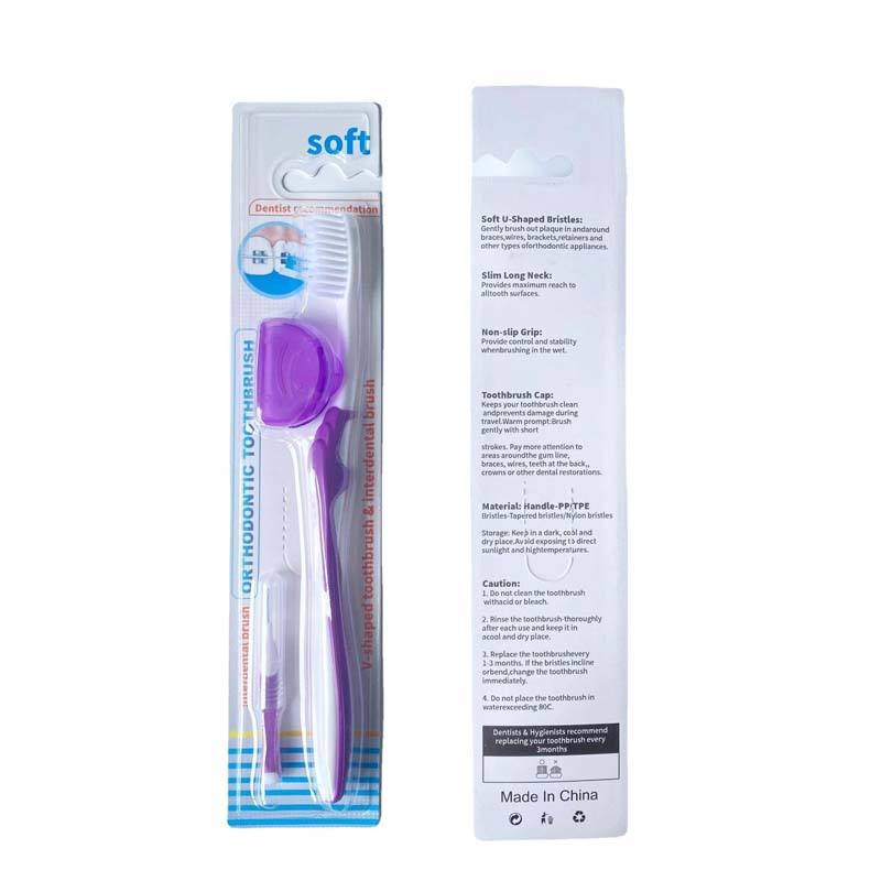 Directly Manufactured Soft V-Shape Nylon Bristle Toothbrush Orthodontic Travel Kit for Adults Home Use with Interdental Bristles