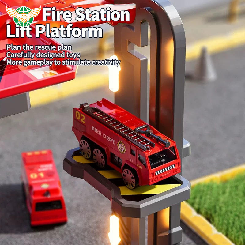 Camion de pompiers déformable en plastique, transformable et démontable, avec piste de stationnement, jouet de ville pour enfants