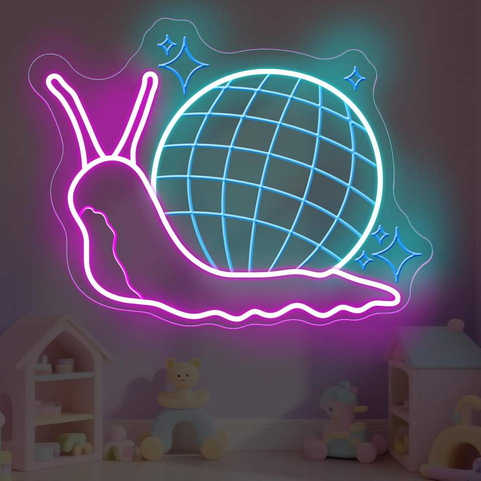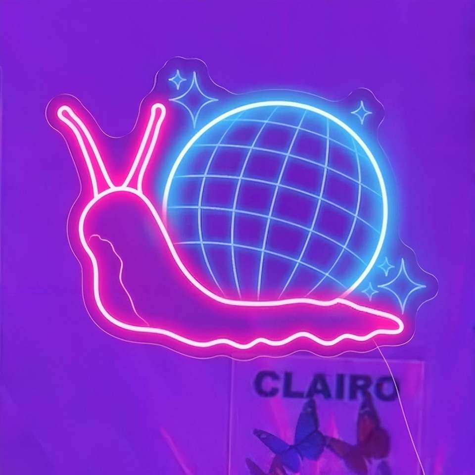 Enseigne au néon en forme d'escargot boule disco, art mural pour fête, enseigne au néon pour bar, enseigne au néon personnalisée pour bar à bière, bar musical