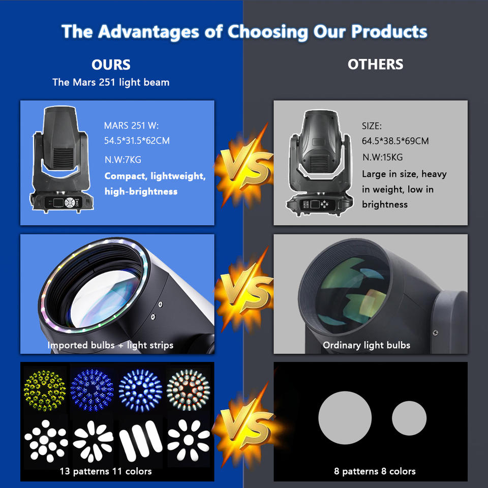 Lumière de scène disco Mar 251 Ampoule faisceau tête mobile Lumière polyvalente Effet de prisme gobo arc-en-ciel Équipement DJ pour concert club