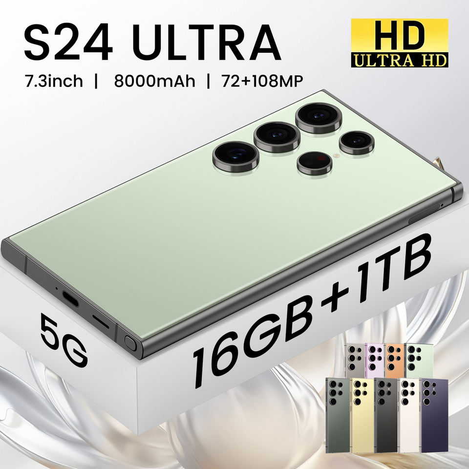 Téléphone mobile intelligent Android débloqué 2025 S24 Super 5G avec processeur Déca-cœur, écran HD 7,3 pouces 120 Hz et appareil photo arrière 108 MP – Vente en gros