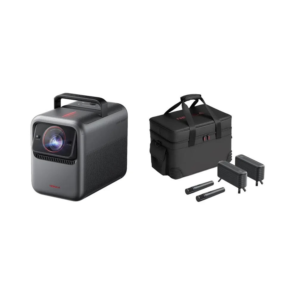 Offre promotionnelle : Projecteur laser triple 4K Soundcore Nebulas X1 + Micro Gimbal + Ensemble d'enceintes satellite + Boîte de transport pour télécommande