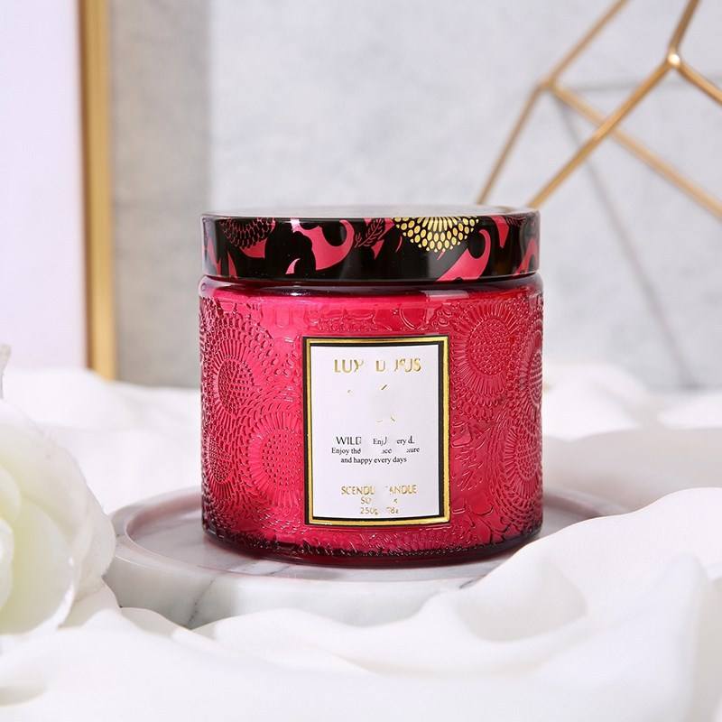Remise Récipient à bougie marguerite givrée en verre de 200ml Récipient cylindrique en bois rose pour bougies