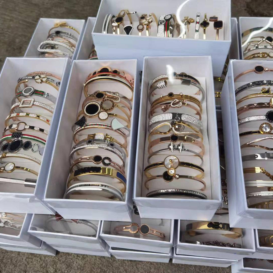 Assortiment de bracelets en acier inoxydable et titane à prix réduit, designs variés et aléatoires, bijoux sans rouille