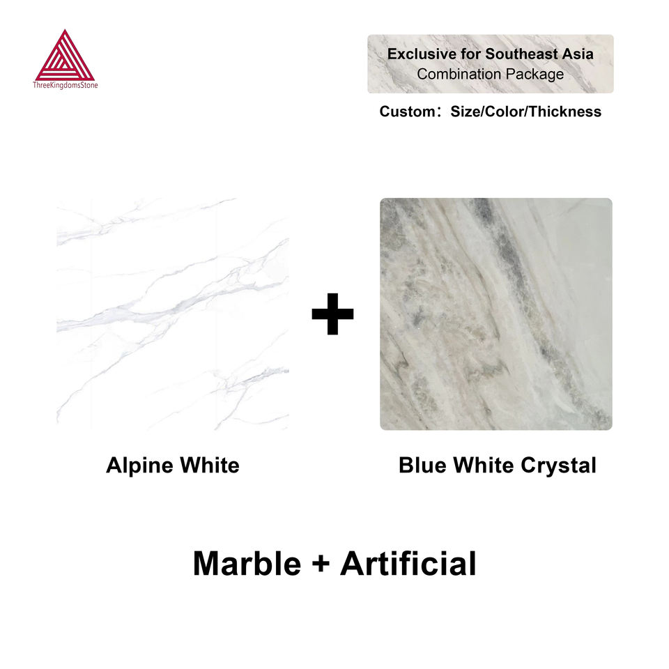 Pack de marbre cristallin bleu et blanc à prix réduit pour tables de salles de réunion et surfaces de cloisons pour espaces de coworking