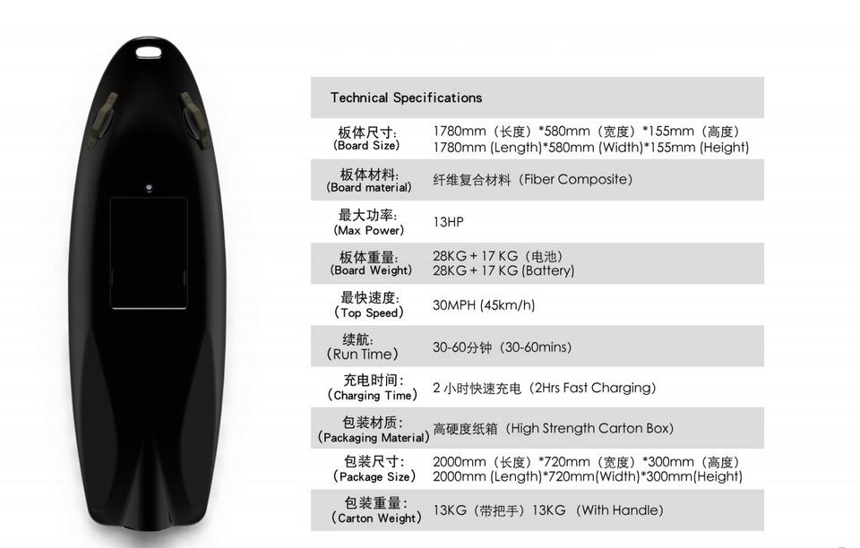 Détails des accessoires d'emballage:Planche de surf, batterie, support, sac à dos, chargeur, aussi