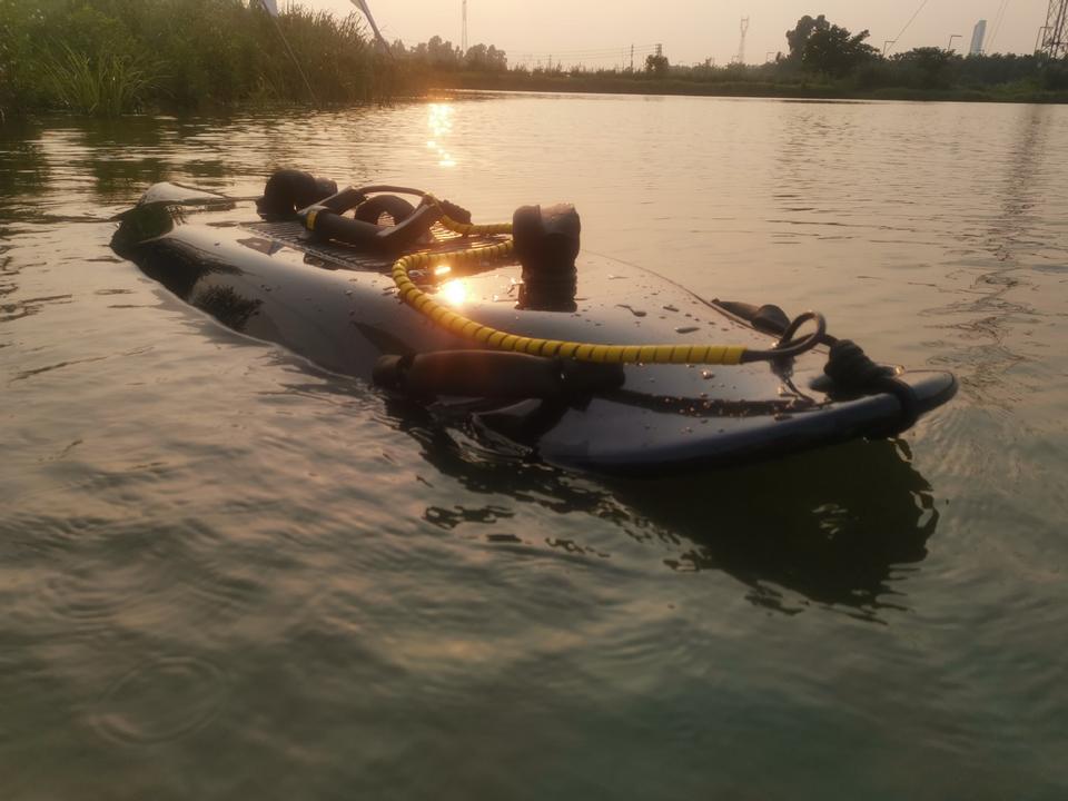 Détails des accessoires d'emballage:Planche de surf, batterie, support, sac à dos, chargeur, aussi
