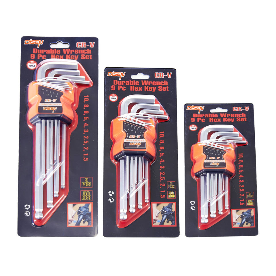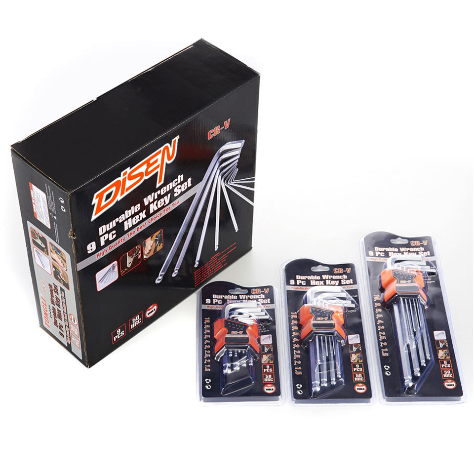 Jeu de clés Allen hexagonales en acier inoxydable Disen Torx Star 2/3/6 mm à tête carrée, 9 pièces, double extrémité, métrique, DIY, OEM