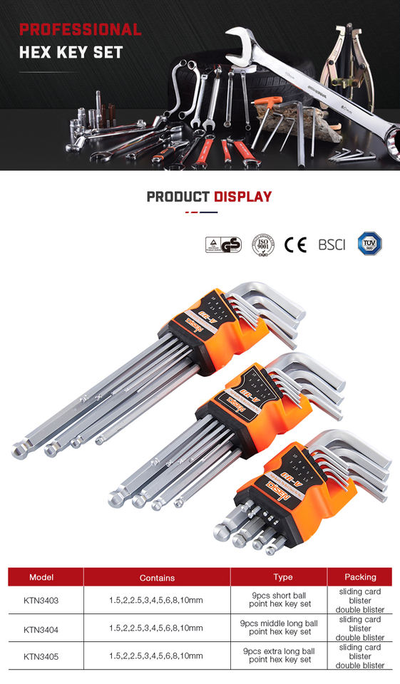 Nom du produit:Jeu de 9 clés Allen courtes à tête sphérique carrée en forme d'étoile, en pouces