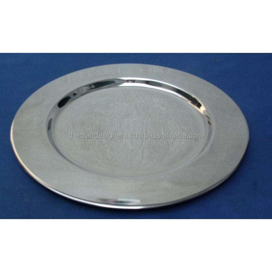 Assiette de charge à vaisselle bonne qualité PLATEAU DE NOURRITURE EN MÉTAL fini vaisselle réutilisable assiettes de chargeur de gros exportation