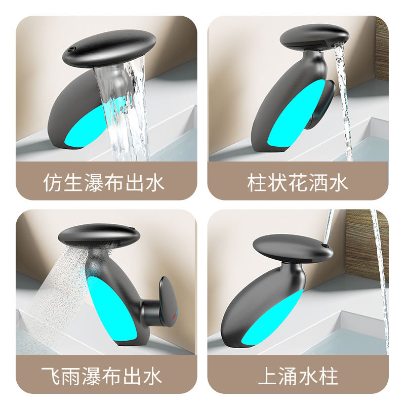 Robinet extractible Disixindi en acier inoxydable avec valve en céramique, lumière LED, pommeau de douche ovale à jet de pluie pour lavabo de salle de bain