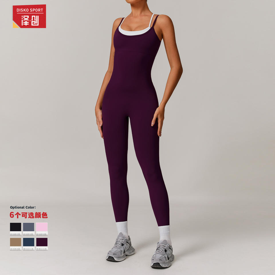 Disko Sport – combinaison deux pièces de couleur unie pour femmes, avec design dos croisé, vêtements de yoga et de fitness, DLT8843