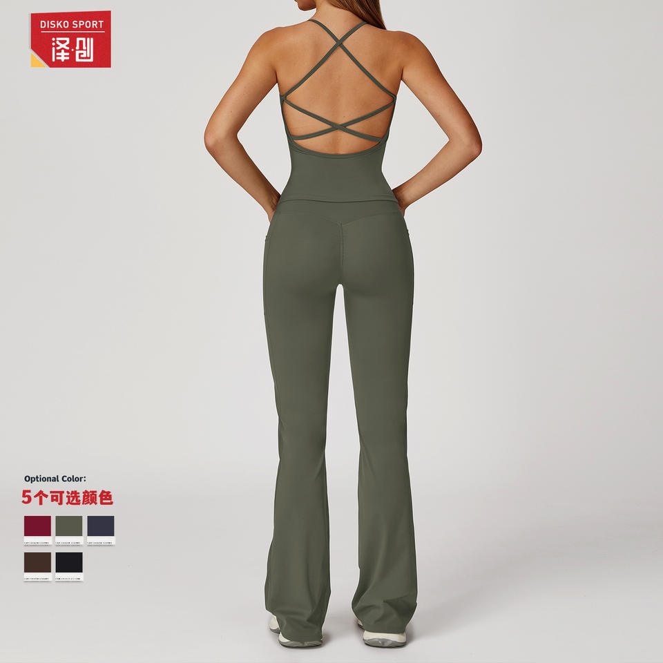 Disko Sport – ensemble de yoga deux pièces pour femmes, couleur unie, dos croisé, vêtements de fitness, course en plein air, entraînement, TZ2043