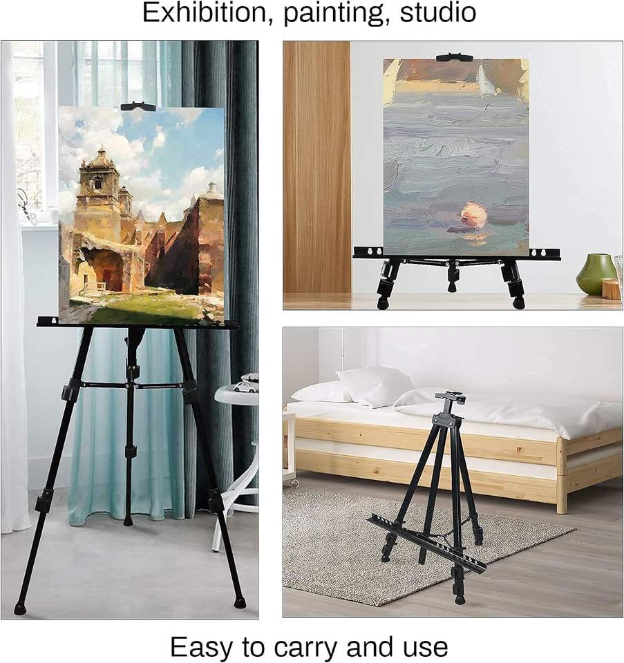Chevalet de Présentation, Chevalet d'Art Réglable en Métal pour Toiles de Peinture sur Table/au Sol, Exposition