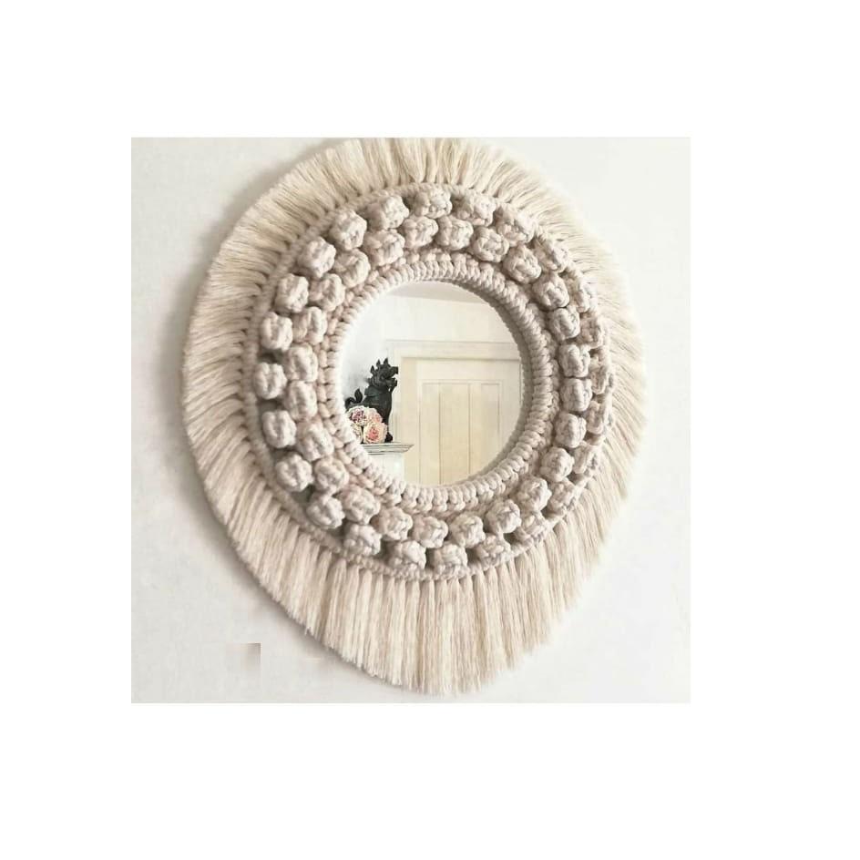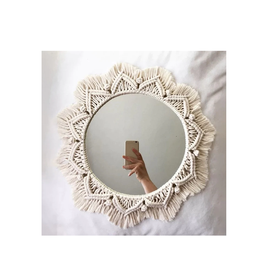 Miroir mural rectangulaire grand format en macramé, style nordique, pour chambre et salon