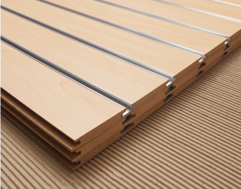 slatwall groove mdf panels with aluminum bar , mdf v groove panel