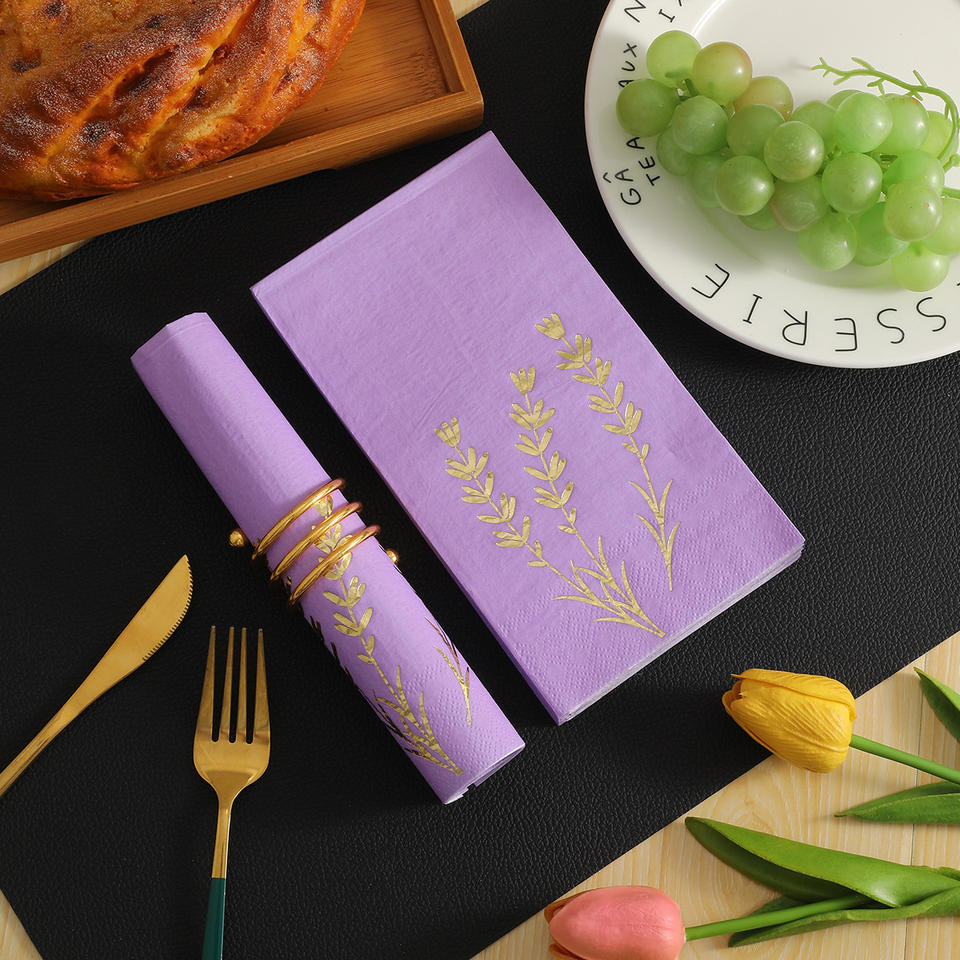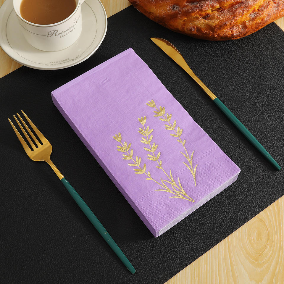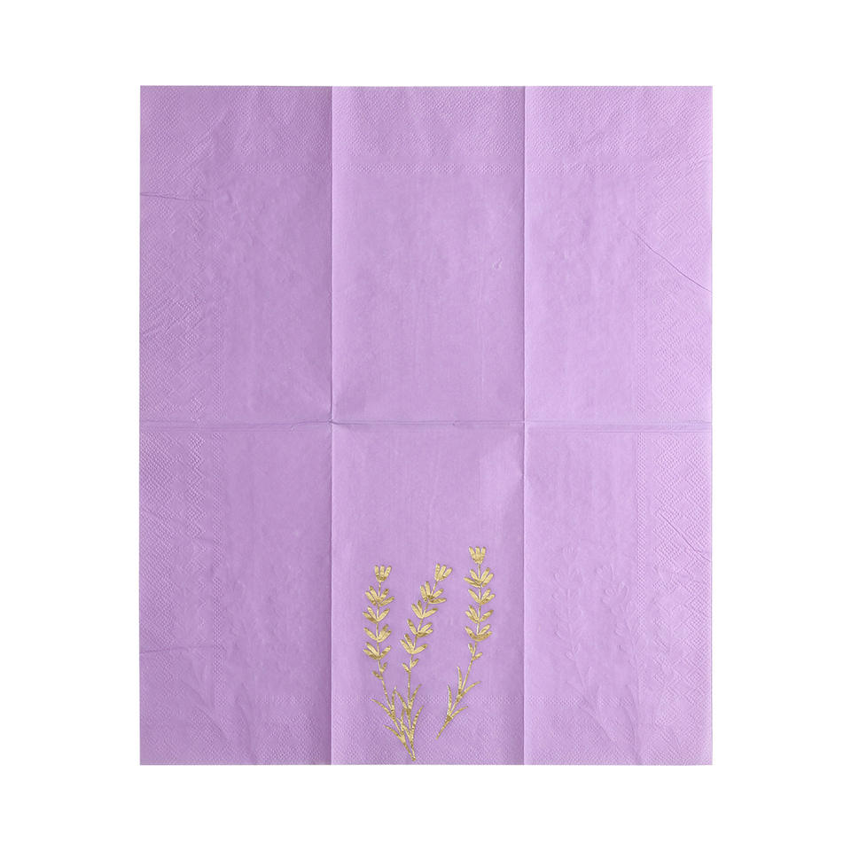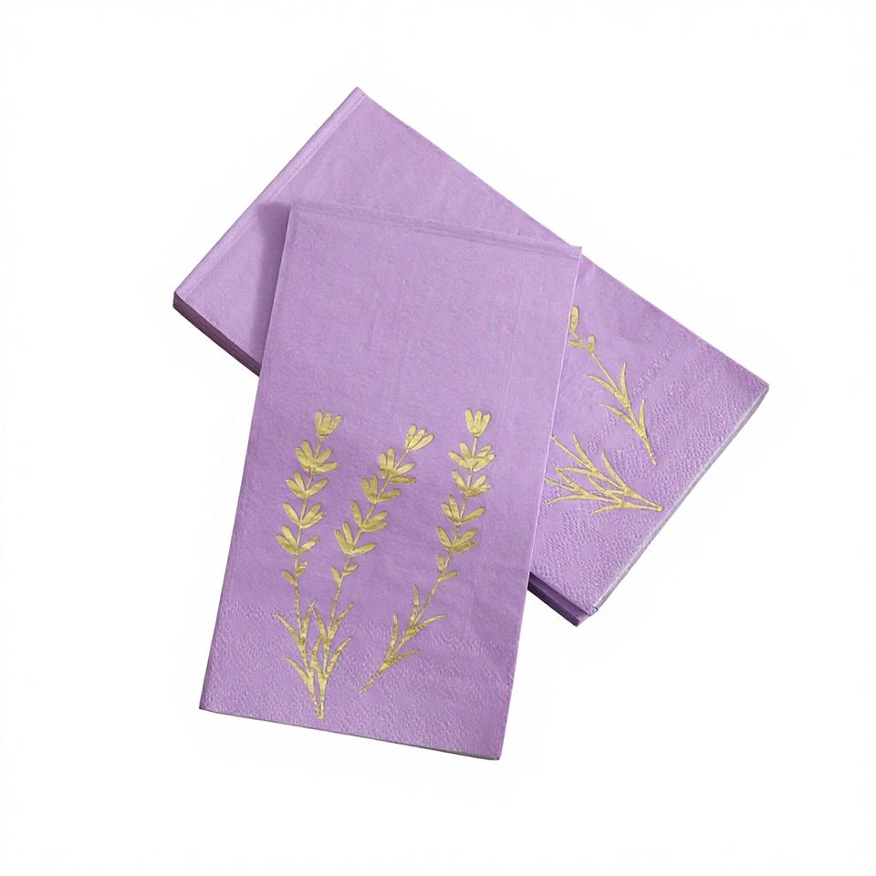 Serviette jetable en papier 2 plis, violet lavande, imprimée or, en pâte de bois vierge, pour les invités de vos fêtes et événements