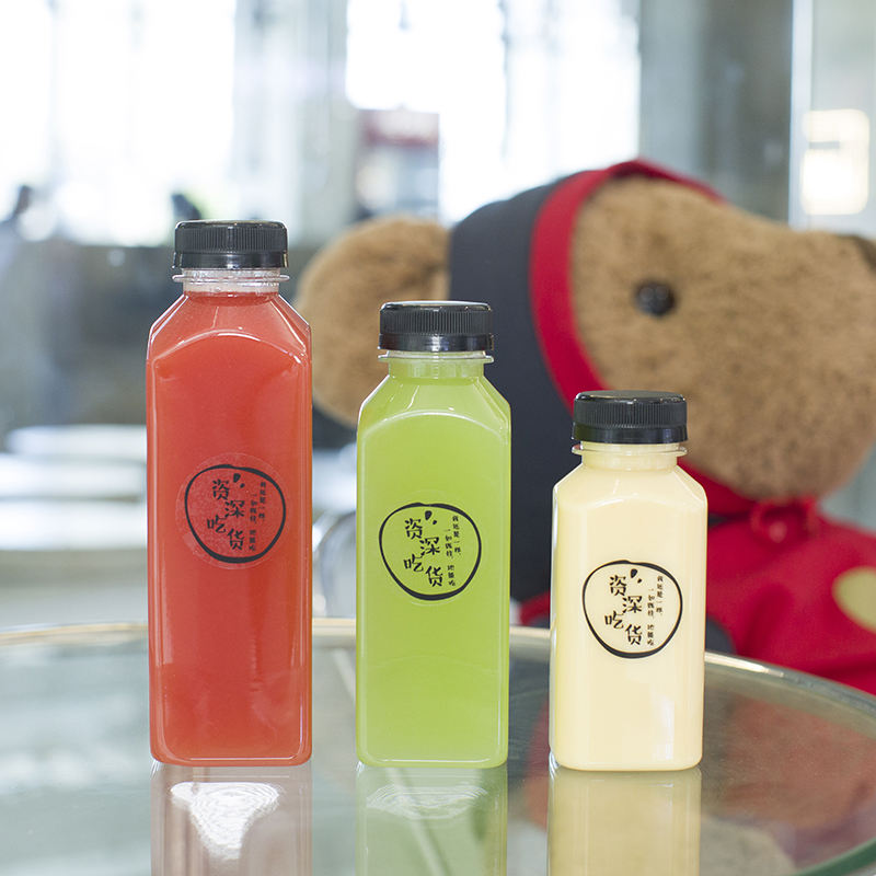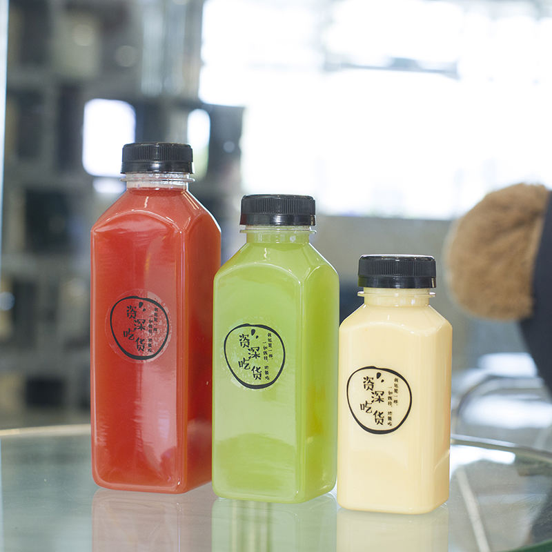 Bouteille de jus en PET transparente jetable de 250 ml, 350 ml, 500 ml avec bouchon à vis et impression sérigraphique pour eau minérale, thé, soda, boissons énergisantes