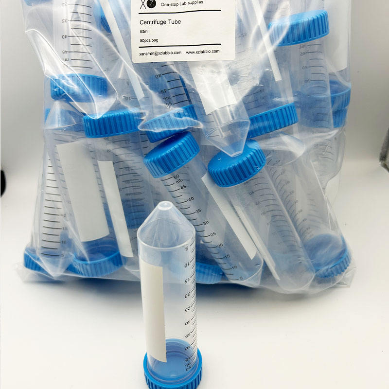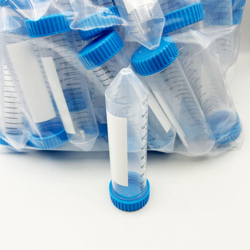 Tube à centrifuger jetable en polypropylène transparent de 50 ml, fond conique, graduation blanche, type denté, usage en laboratoire, ODM/OEM