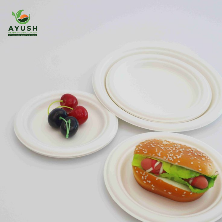 Assiettes jetables en bagasse (pulpe de canne à sucre) de 6 à 10 pouces - Écologiques et biodégradables pour les fêtes de remise des diplômes et les célébrations d'anniversaire
