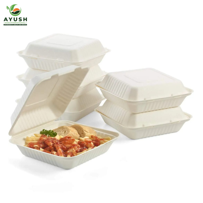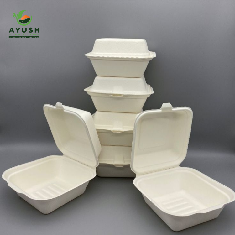 Contenants jetables en bagasse de 9x9 pouces avec couvercle, en pulpe de canne à sucre, pour services de livraison de repas quotidiens