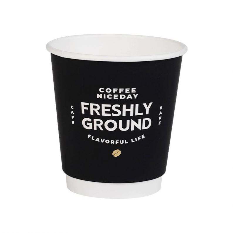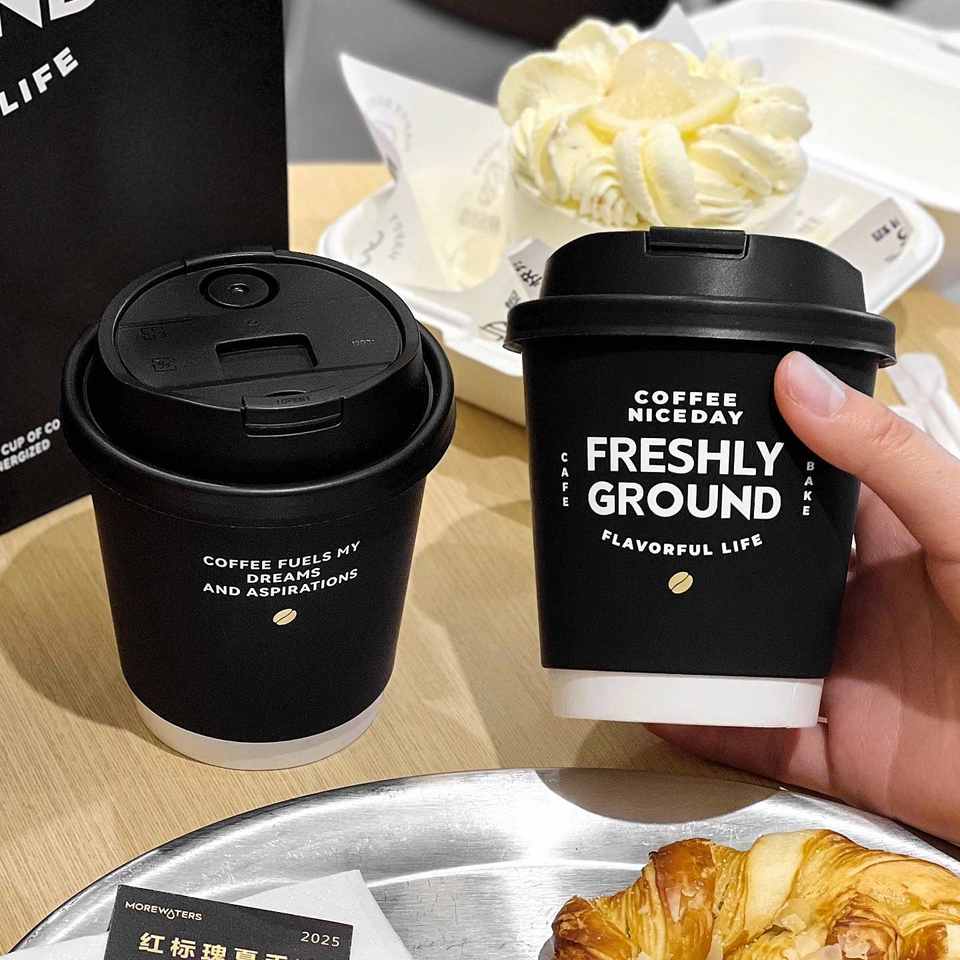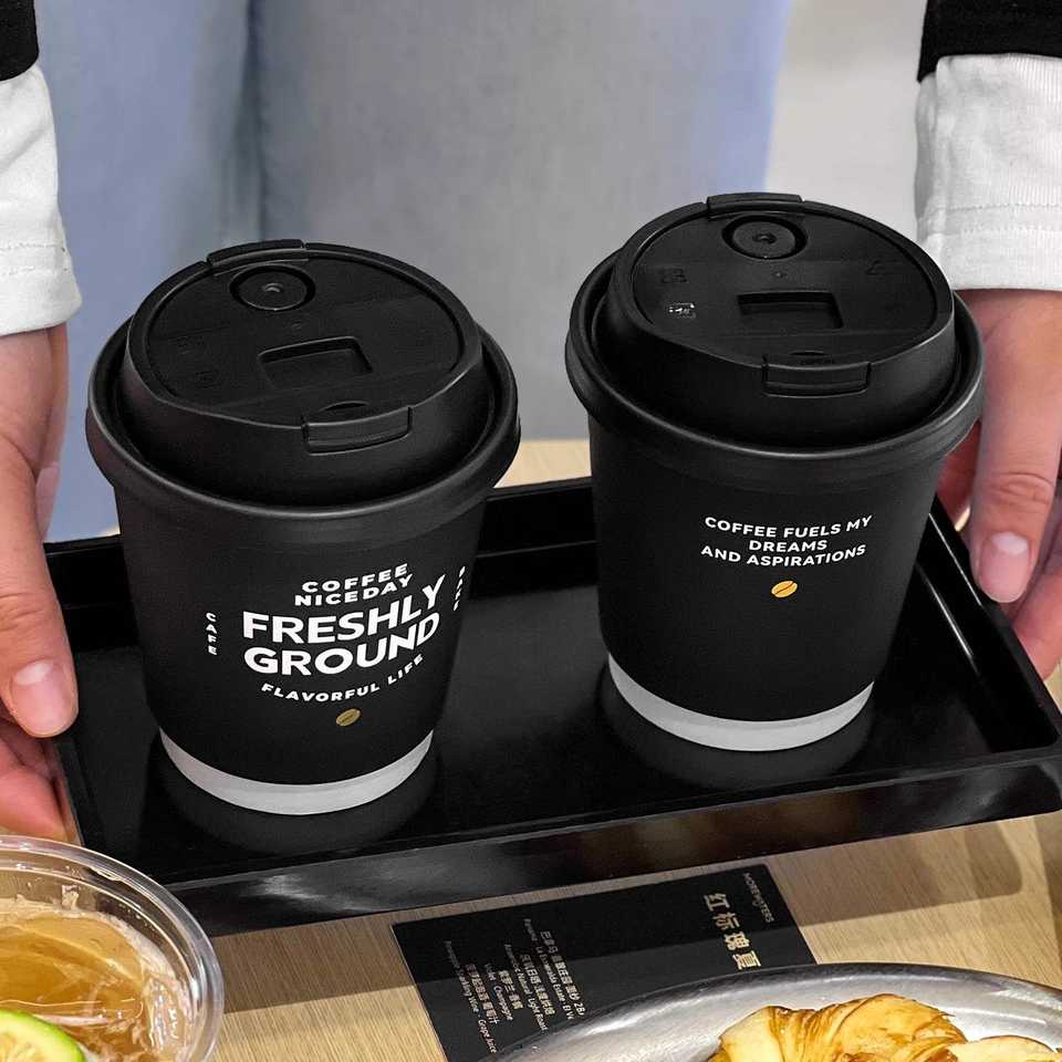Gobelet à café en papier jetable noir avec gaufrage doré, gobelet d'emballage à emporter personnalisé épaissi avec couvercle pour les cafés