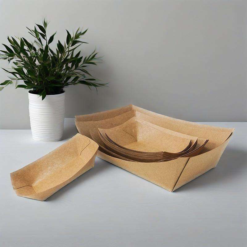 Plateau alimentaire en papier kraft brun jetable pour bateau Boîte d'emballage alimentaire en PLA biodégradable pour snack Plateau alimentaire en papier