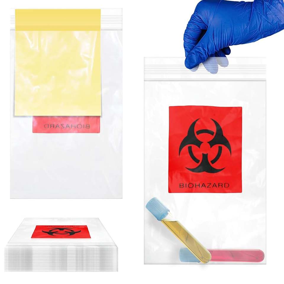 Sac à échantillons transparent jetable pour risques biologiques avec pochette à documents Sac kangourou refermable économique à usage unique