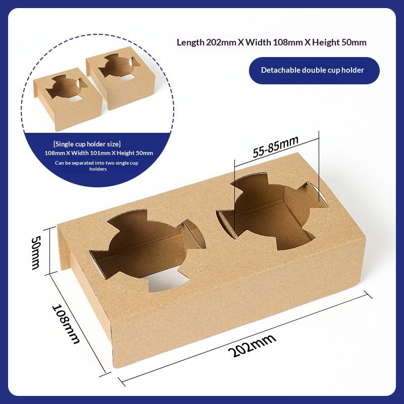 Plateau porte-gobelets jetable, porte-boissons en papier kraft pour boissons à emporter, thé au lait, jus, gobelets chauds et froids