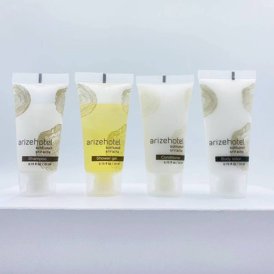 Ensemble de produits de toilette pour hôtel miniature bon marché avec logo personnalisé jetable, shampoing, gel douche