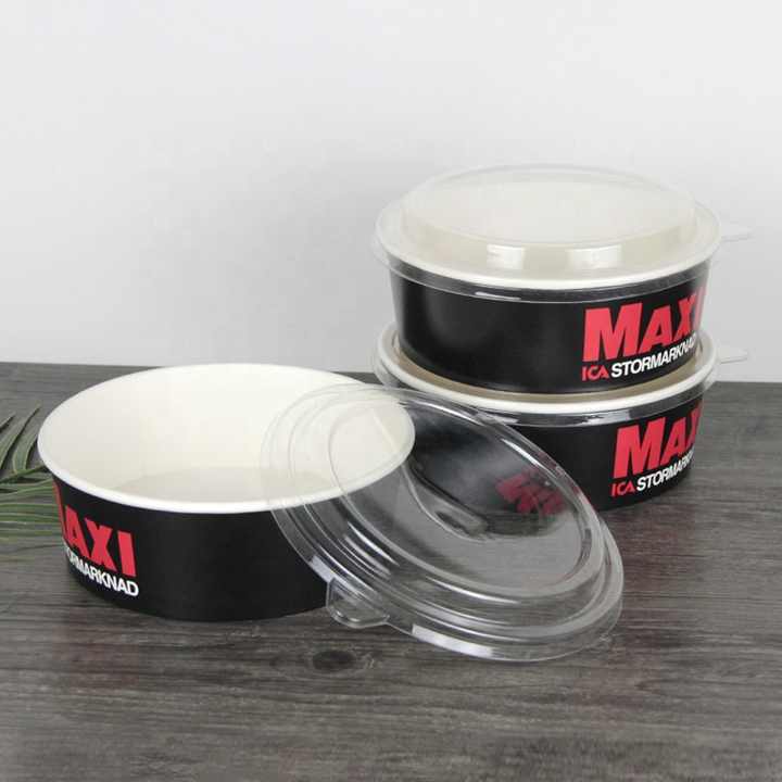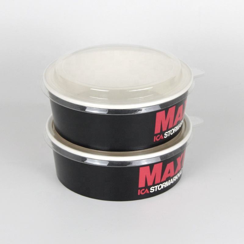 Boîte d'emballage alimentaire noire à impression personnalisée jetable, récipient bol à saumon avec couvercle
