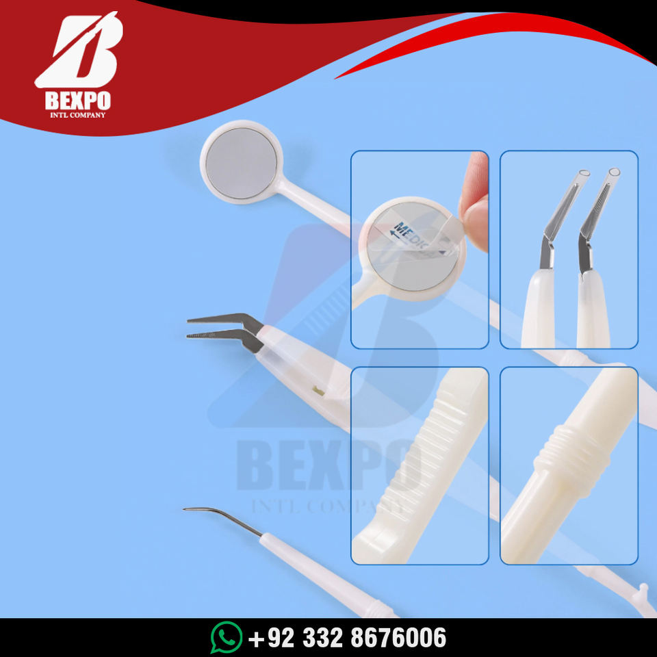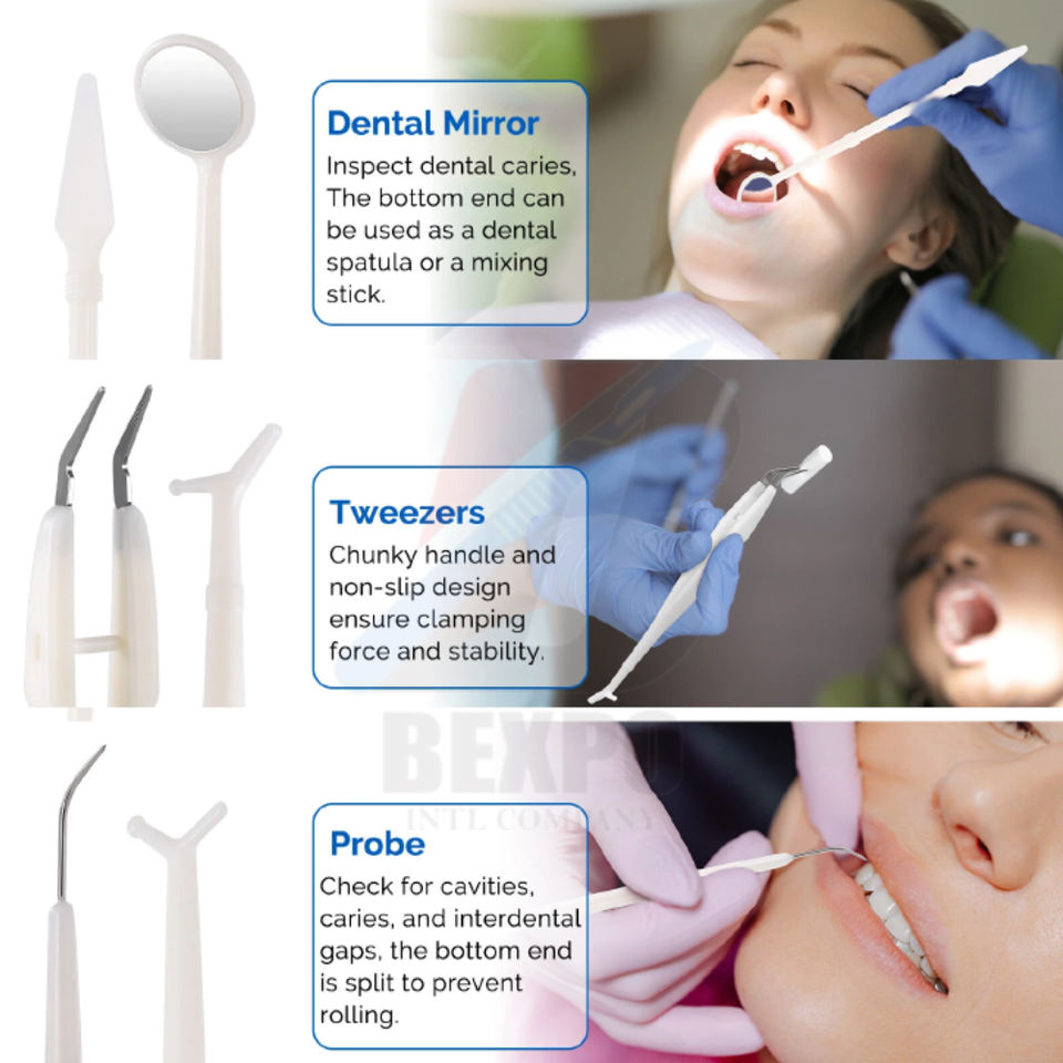 Kit d'examen dentaire jetable avec miroir, sonde exploratrice, pince, kit de nettoyage buccal avec sonde, pinces, miroirs buccaux, 3 pièces