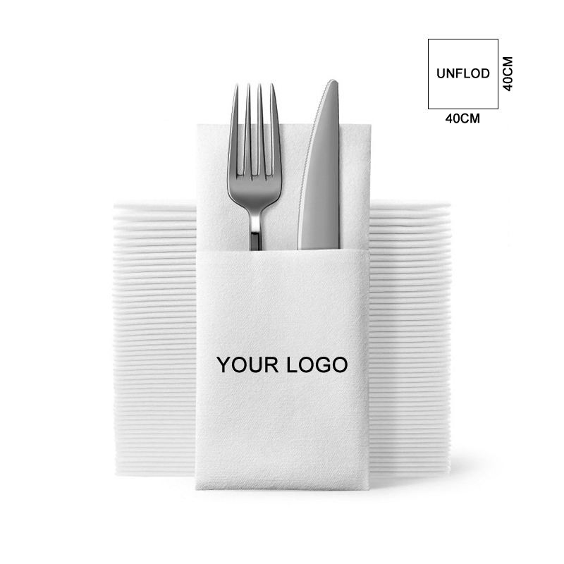 Serviettes de table jetables avec poches pour couverts intégrées pour l'argenterie Linge Sensation Airlaid Papier Serviettes blanches Poche pré-pliée