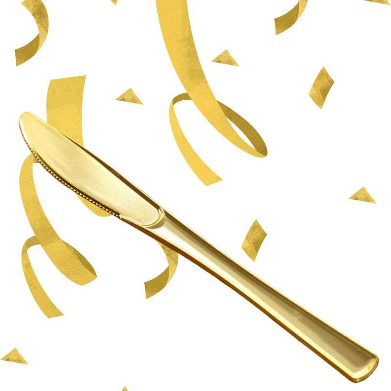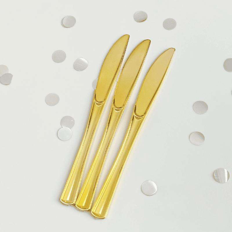 Couteau jetable pour événements et fêtes, longueur 10 cm, couleur or