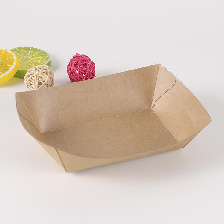 Barquette jetable en papier kraft brun, imperméable et résistante à l'huile, avec revêtement PE pour emballage alimentaire