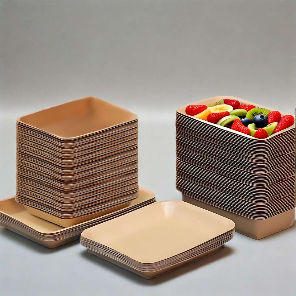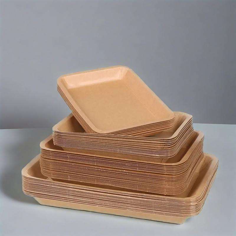 Barquette rectangulaire jetable en papier kraft avec revêtement PE, barquette pour la restauration rapide, pour salade, collation, sushi, pain, chocolat, biscuits