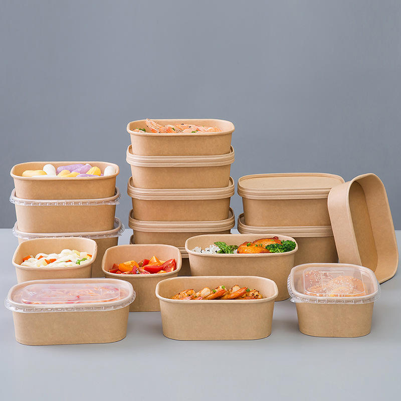 Boîte rectangulaire carrée en papier kraft jetable boîte à lunch à emporter bol d'emballage de salade verte avec couvercle.