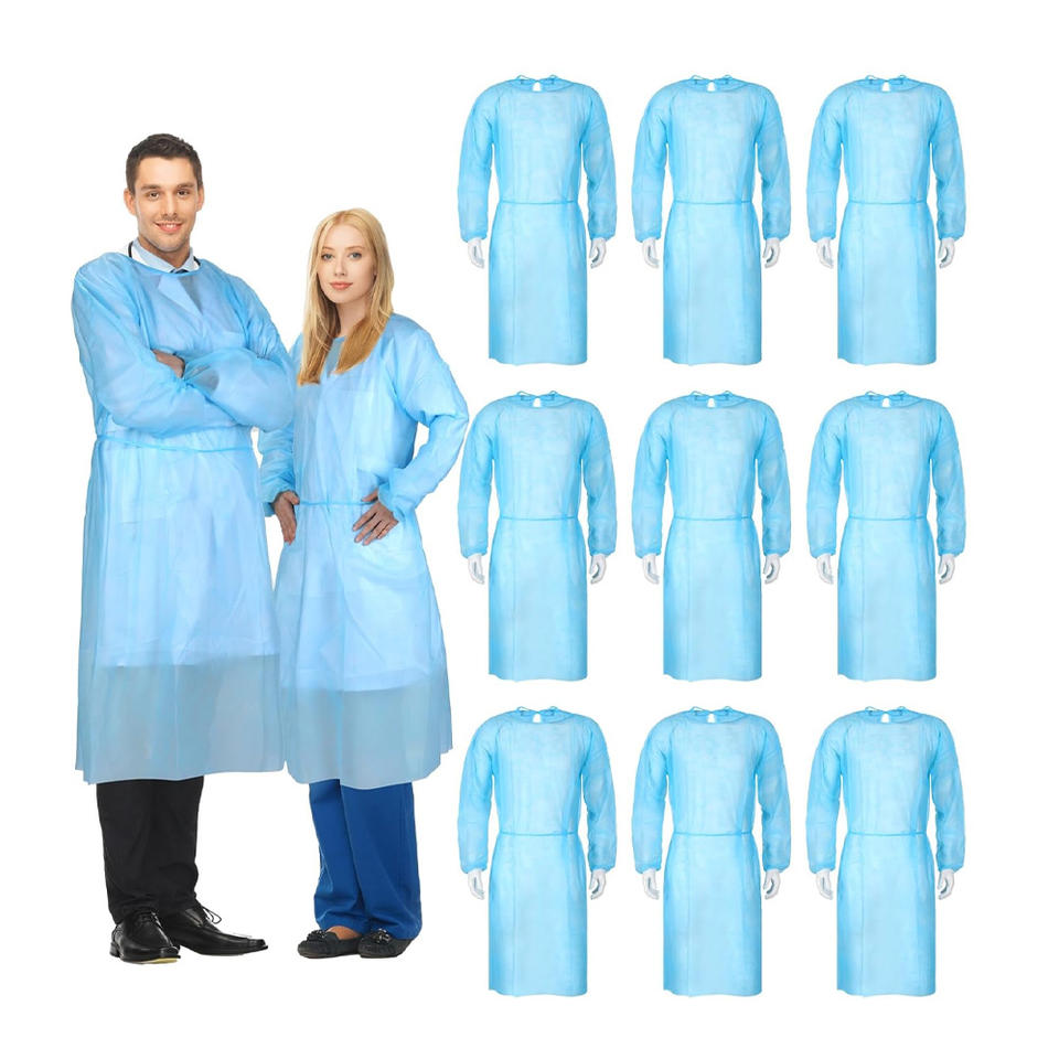 Robe d'isolation médicale jetable à manches longues Matériau imperméable non tissé Attache arrière de protection pour laboratoire de clinique hospitalière
