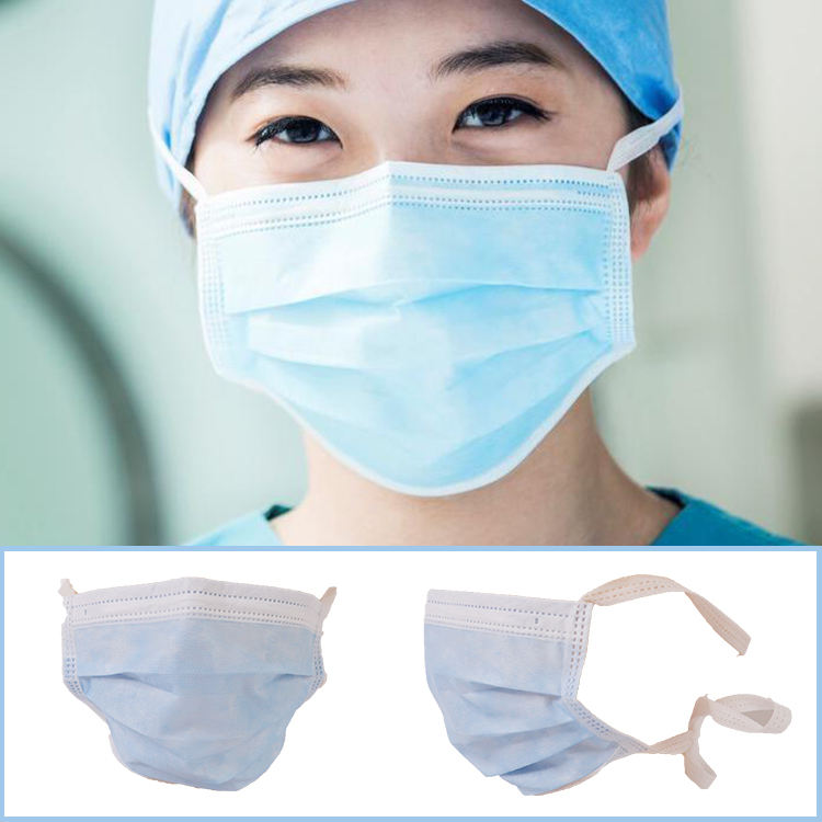 3 planchers chirurgicaux médicaux jetables avec le masque protecteur bleu de liens