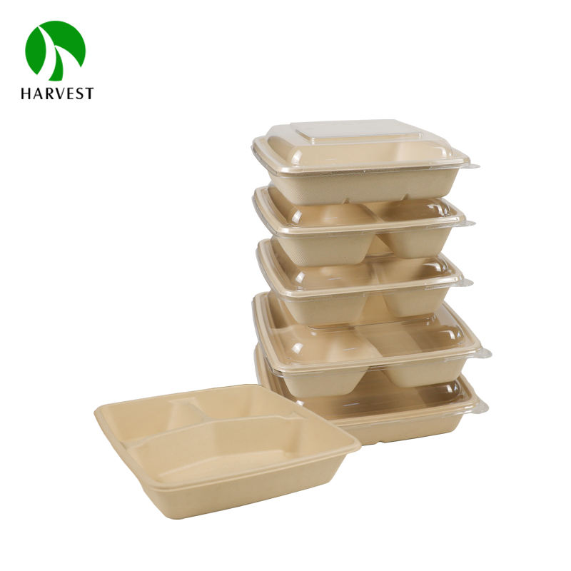 Mot-clé1:Contenant alimentaire biodégradable jetable en bagasse, plateau à 3 compartiments