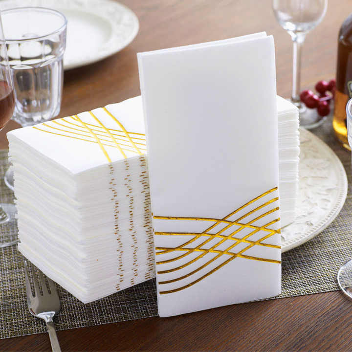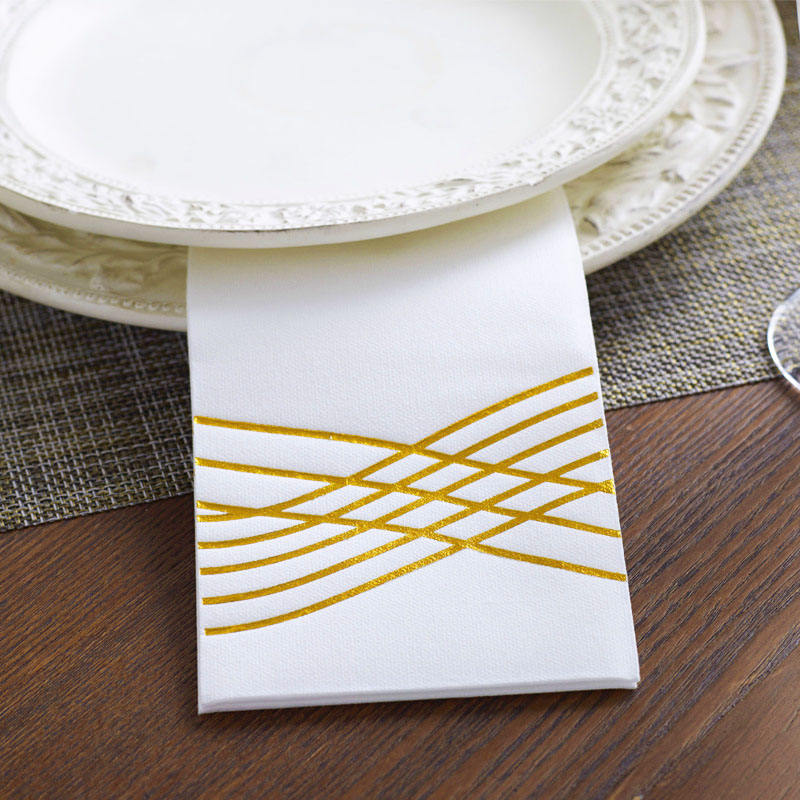 Serviettes en papier jetables naturelles interpliées à rayures blanches et dorées Essuie-mains en papier jetables pour salle de bain Serviettes en papier personnalisées